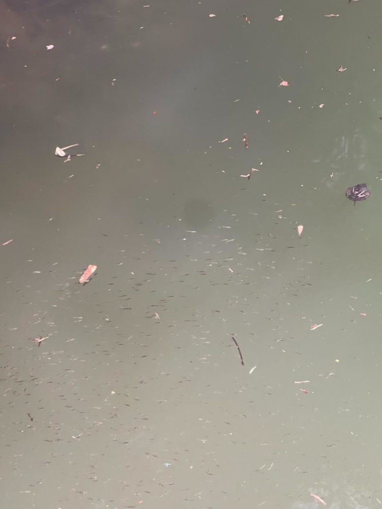 小バスまみれのスポットを見つけ、遊んでもらうか~と、ピクピクやストレートワームなど投げるもみんなフル無視。